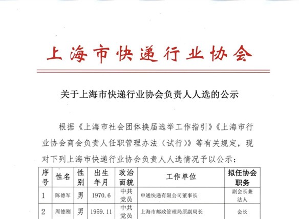 • 关于上海市快递行业协会负责人人选的公示 2025.07.11